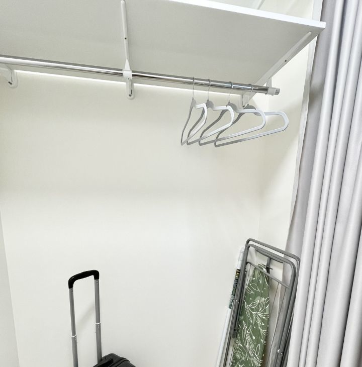 И гардеробная со стиральной машиной и местами хранения для хозяйственных нужд) Гладильная доска и сушилка .