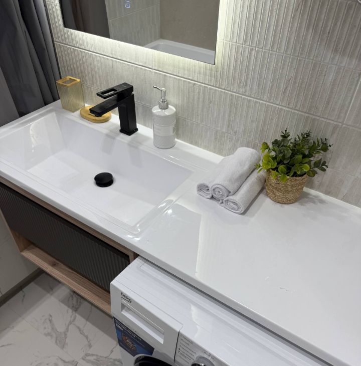 Уютная квартира с современным дизайном. Ремонт делали по дизайн-проекту, как для себя. Полностью была заменена вся электрика, освещение и сантехника на качественную, это гарантия безопасности вас и вашего имущества. Вся необходимая бытовая техника, а также посудомоечная машина, трехступенчатый фильтр для воды, водонагреватель, кондиционер, роутер, продуманная электрика, разные сценария освещения. Приточная вентиляция заведена в квартиру. У рабочего стола, у телевизора в спальне и в гостиной предусмотрены интернет-розетки для стабильного интернет соединения. Телевизор 50' в квартире, у вас есть возможность установить его в гостиной либо в спальне на свое усмотрение.