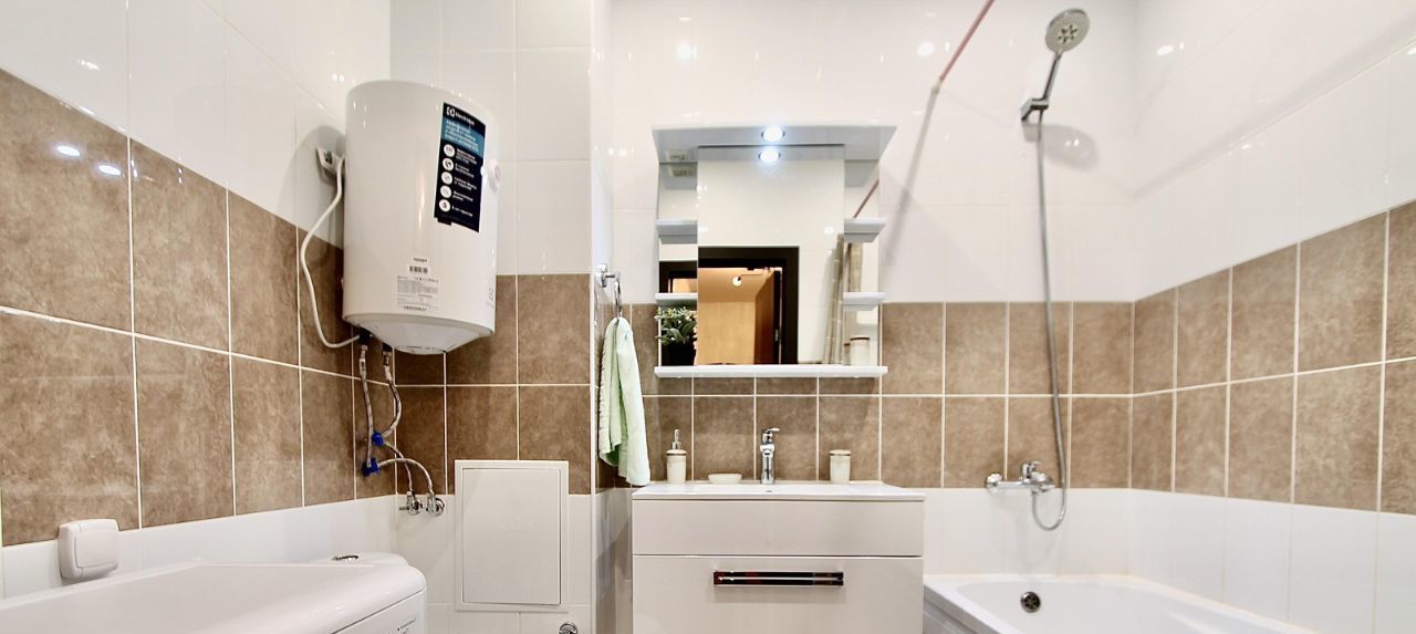 **ЭКСПЛОЖН! ДИЗАЙНЕРСКАЯ 1К 45М² НА 8 ЭТАЖЕ — ВИД+2 ВАННЫ!**