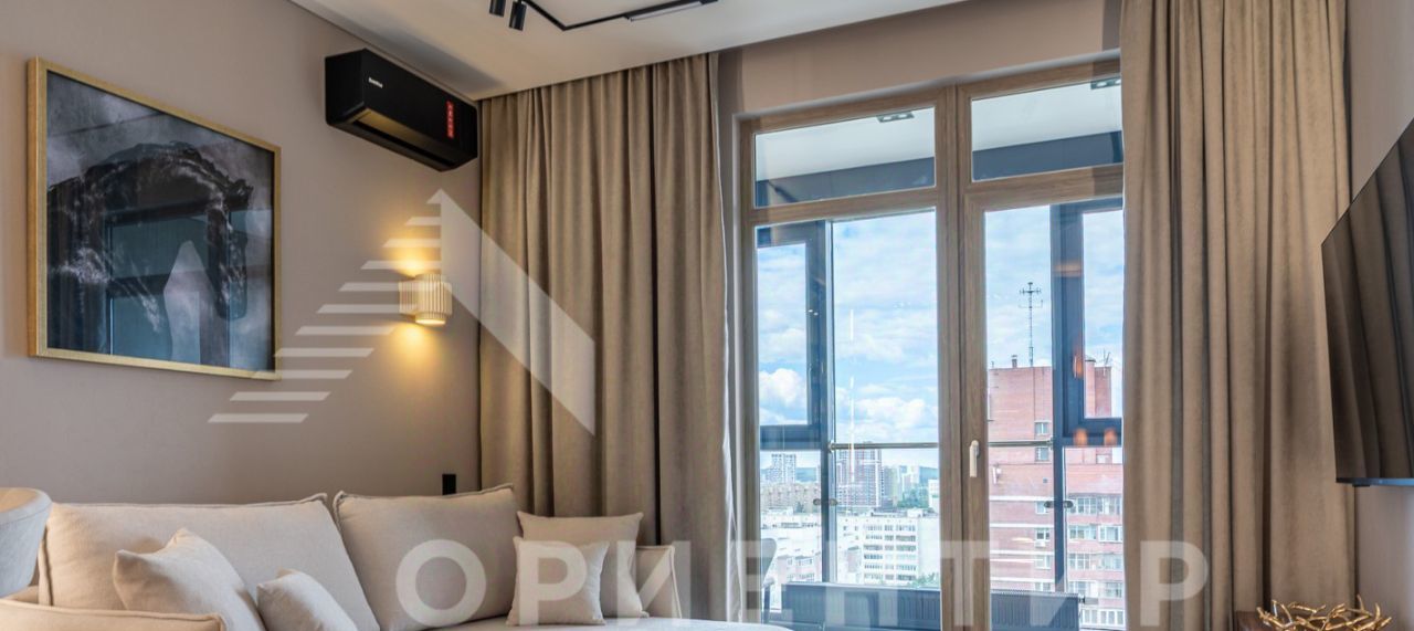 Квартира удобной и функциональной планировки: просторная кухня гостиная с выходом на лоджию (панорамное остекление) вместительная спальня с гардеробной большой совмещенный сан узел В квартире выполнен качественный ремонт по дизайн проекту, вся мебель изготовлена на заказ. Все абсолютно новое и остается при продаже в квартире: кухонный гарнитур со встроенной техникой (Bosch, Samsung) - духовой шкаф, варочная поверхность, вытяжка, холодильник, свч печь, винный шкаф. мягкая мебель - диван, кровать, стулья, кресла Изюминкой квартиры является объединение пространств - встроенный радиус шкаф в коридоре переходит в кухонный гарнитур, создавая единое целое, огромная зеркальная витрина с подсветкой создает уютную приватную вечернюю обстановку. Остров (из камня) - позволит собрать гостей и близких, наслаждаться вечерними закатами с видом на Верх-Исетский пруд. Вместительная спальня, где можно отдохнуть или поработать за рабочим столом, имеется гардеробная. В каждой комнате система кондиционирования, в спальне так же установлен тион.