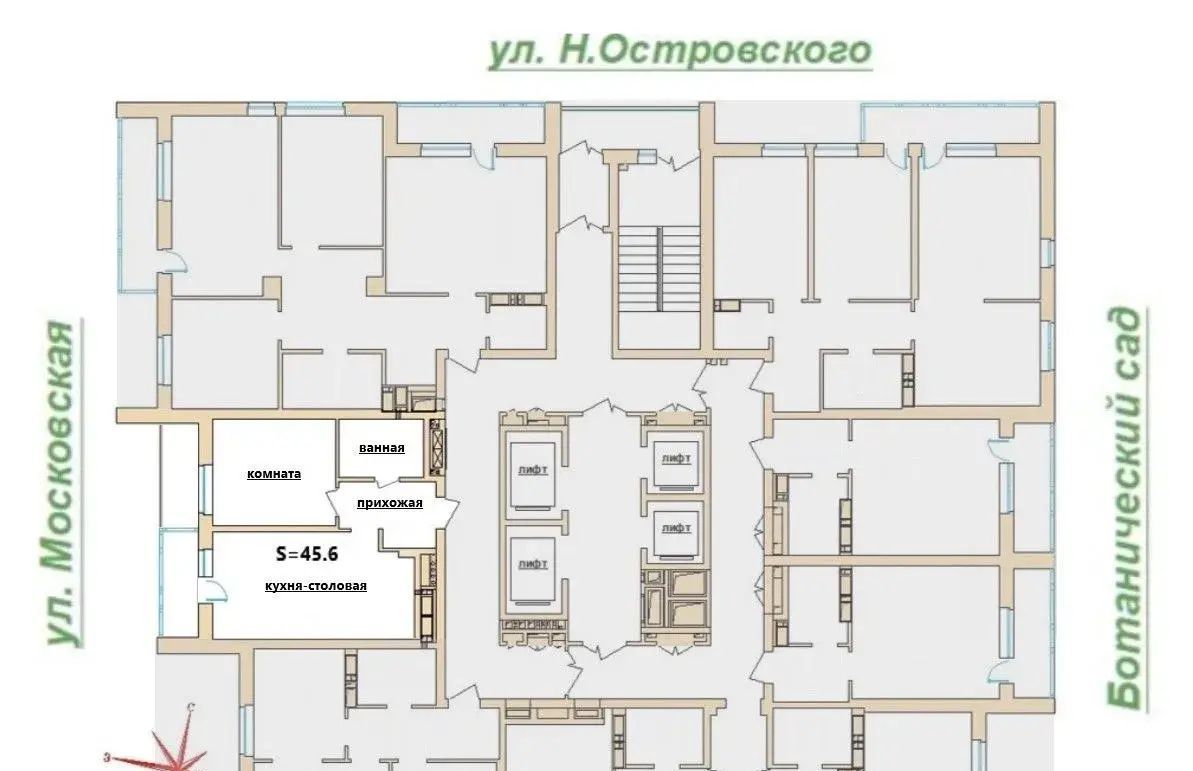 Отдельный плюс — расположение на этаже: всего 8 квартир, при этом вы граничите только с двух- и трёхкомнатными, никакой плотной студийной застройки, как в новых корпусах с 12 квартирами на этаже.