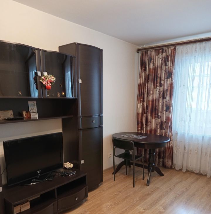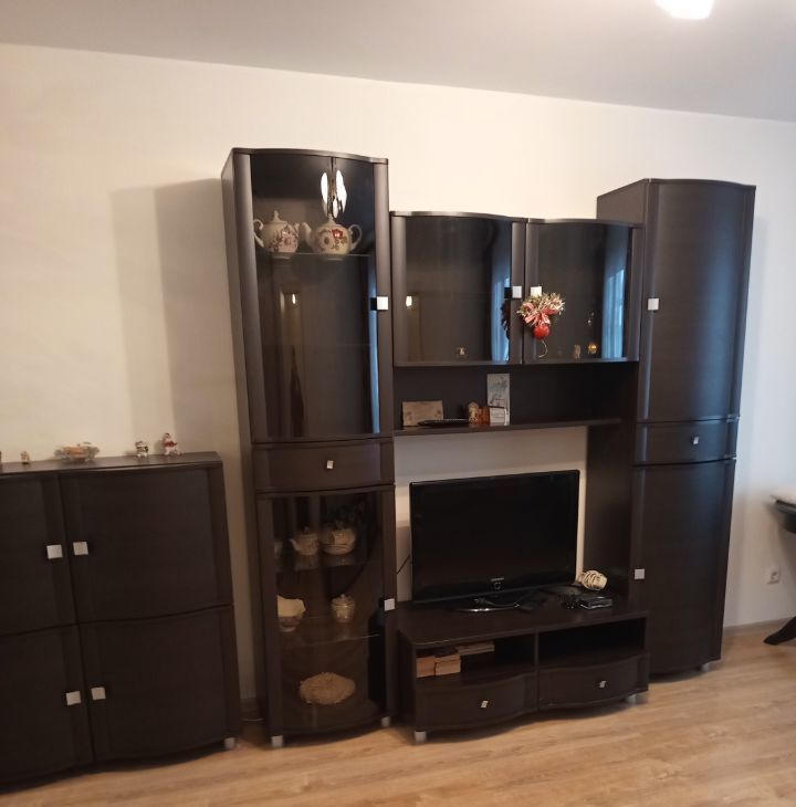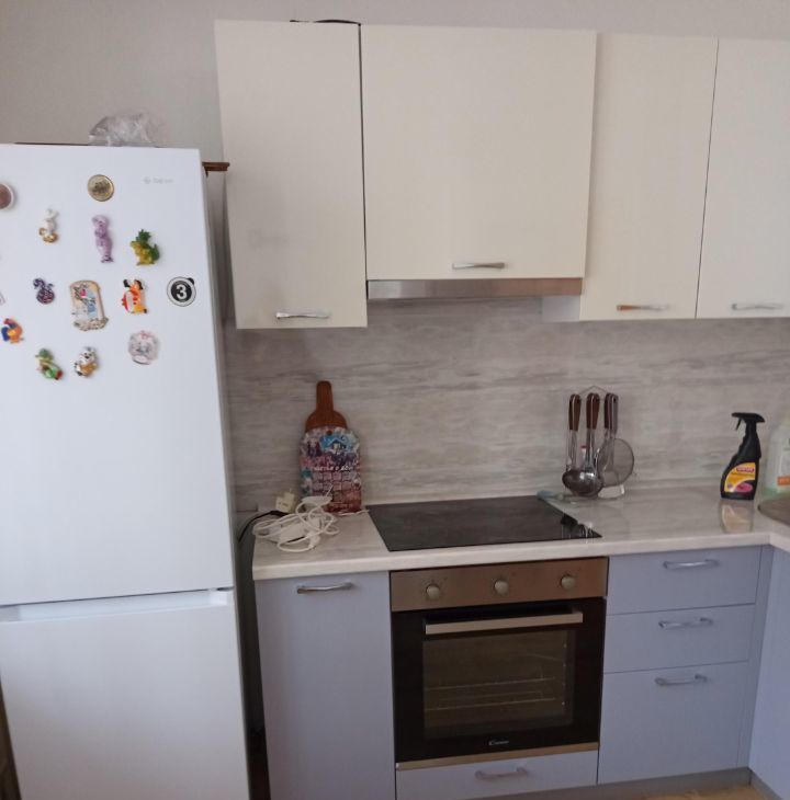 Вся необходимая мебель и бытовая техника для комфортного проживания (большой диван, телевизор, шкаф-купе платяной, утюг, 2х камерный холодильник, стиральная машина-автомат, кухонный гарнитур, электрическая стеклокерамическая плита с духовкой, микроволновая печь, электрический чайник, 2 стола, стулья, посуда, прихожая и т.д.).