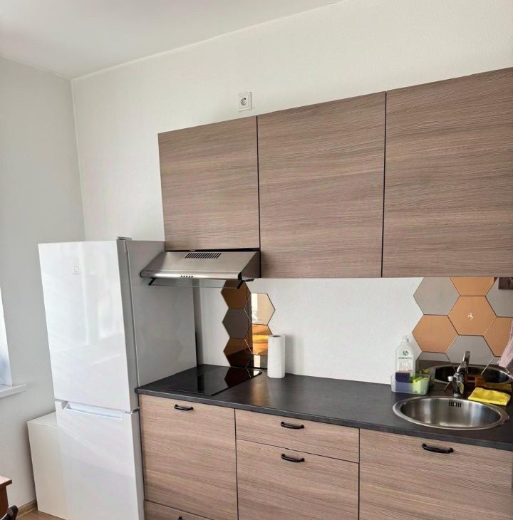 Продается уютная однокомнатная квартира в современном районе. Общая площадь — 38 кв.м, жилая — 20 кв.м, кухня — 10 кв.м. Квартира расположена на последнем, 16-м этаже монолитно-кирпичного дома, построенного в 2017 году. Высота потолков — 2.7 метра. Из окон открывается вид во двор, что обеспечит тишину и покой.