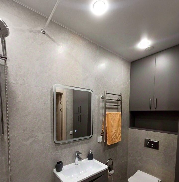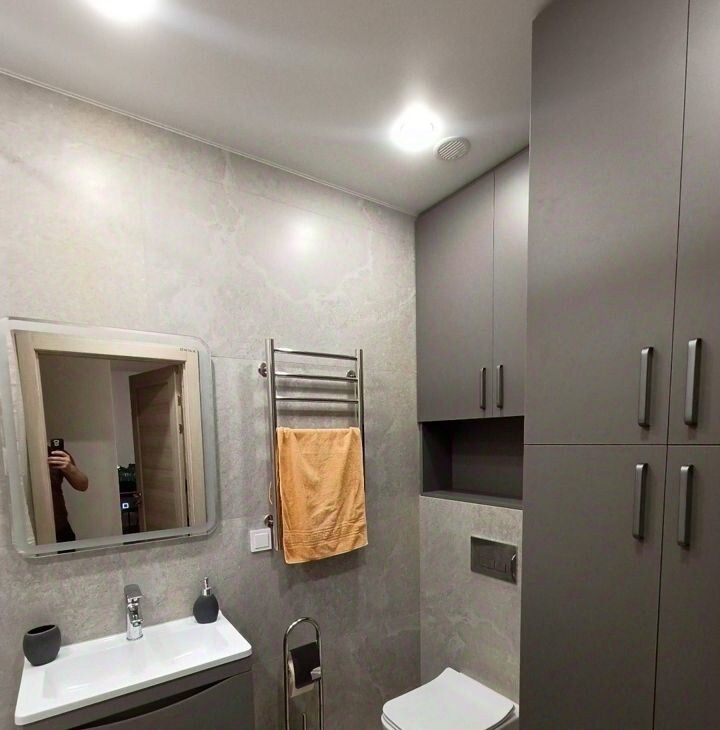 Сразу после ремонта. Санузел после дизайнерского ремонта. Инсталляция, теплый пол, глубокая и широкая ванна, новая стиральная машина.