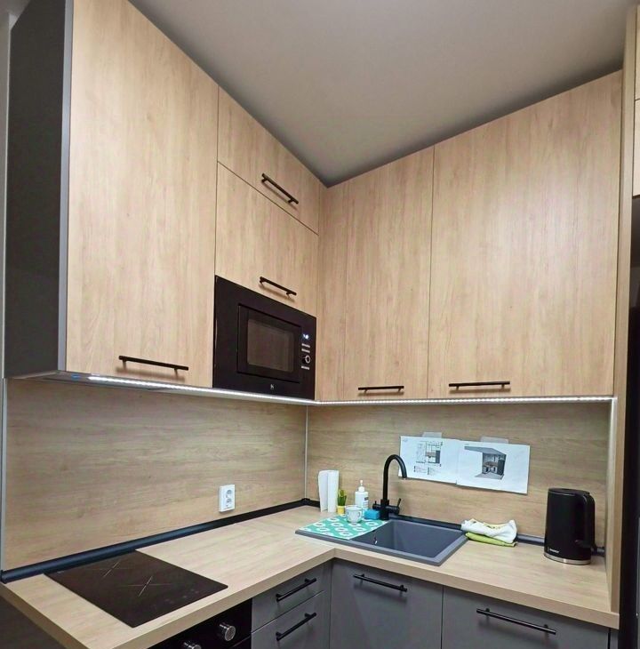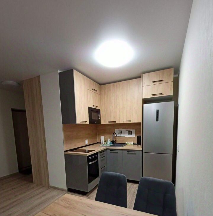 Новая кухня со всей техникой, новый холодильник nofrost, посудомойка, вытяжка, микроволновка, духовка, индукционная варочная плита, чайник. Мощный фильтр для питьевой воды Фаворит. Обеденный стол и стулья. Вся посуда.