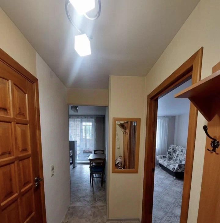 Квартира мебелирована: диван раскладной, шкаф для одежды, прихожая На кухне есть всё необходимое: гарнитур, плита холодильник, стиральная машина. На лоджии можно обустроить лаунж зону. В комнате при необходимости можем поставить письменный стол и тумбу для учащихся.