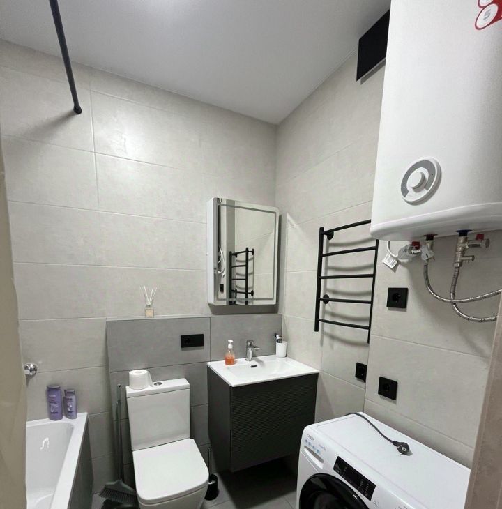 Сдаётся уютная однокомнатная квартира в современном доме 2025 года постройки. Площадь — 31,5 кв. м., из них жилая — 18 кв. м., кухня — 10 кв. м. Квартира расположена на 16 этаже 32-этажного здания, окна выходят во двор, что создаёт тихую и спокойную атмосферу. Высота потолков — 2,7 метра, что добавляет пространства.