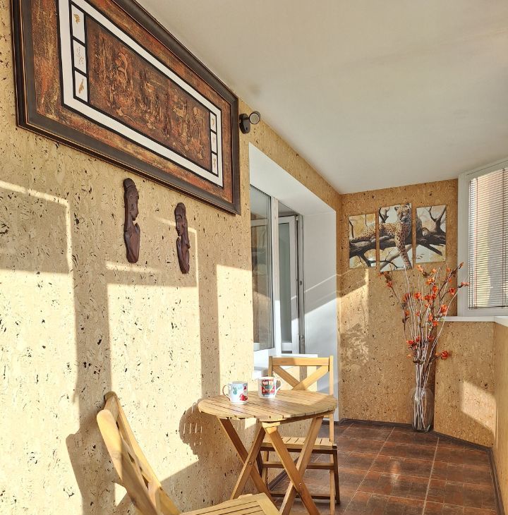 Ваше личное пространство: застекленная лоджия — идеальное место для утреннего кофе или отдыха вечером.