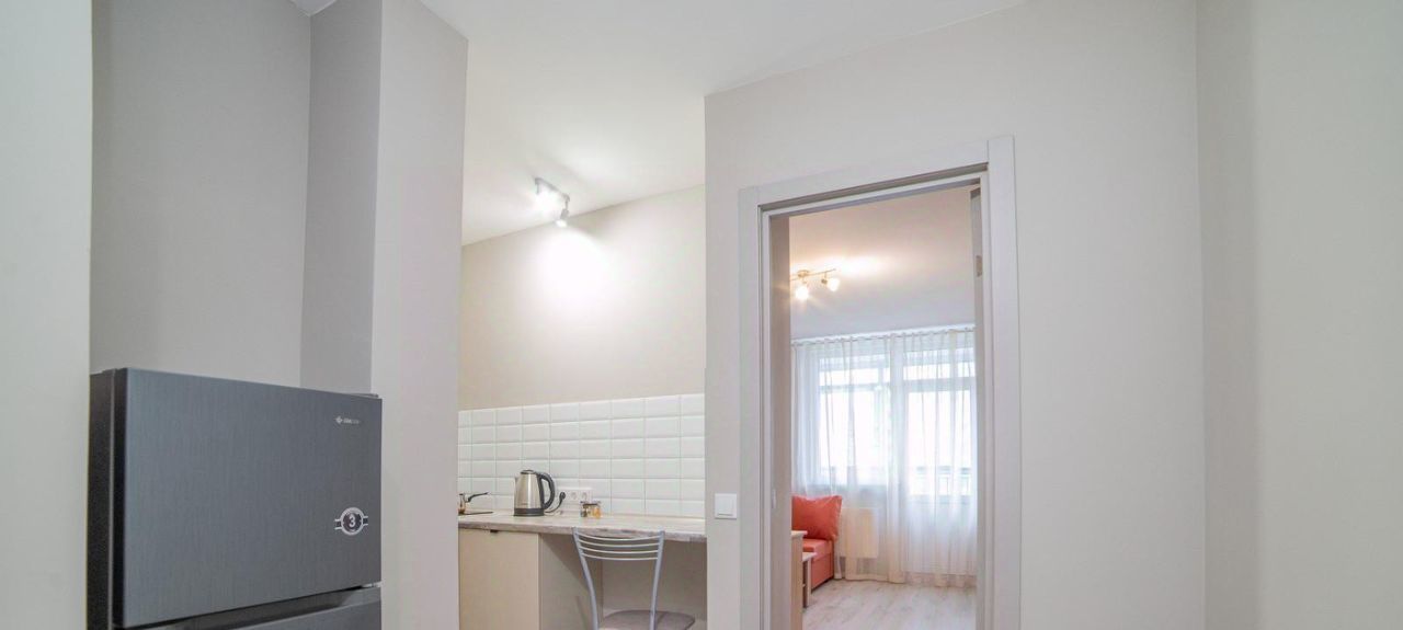 Отличное состояние! Квартира полностью укомплектована для жизни. Уникальная продуманная планировка - просторная прихожая, ниша c холодильником, кухня отделена от жилой комнаты.