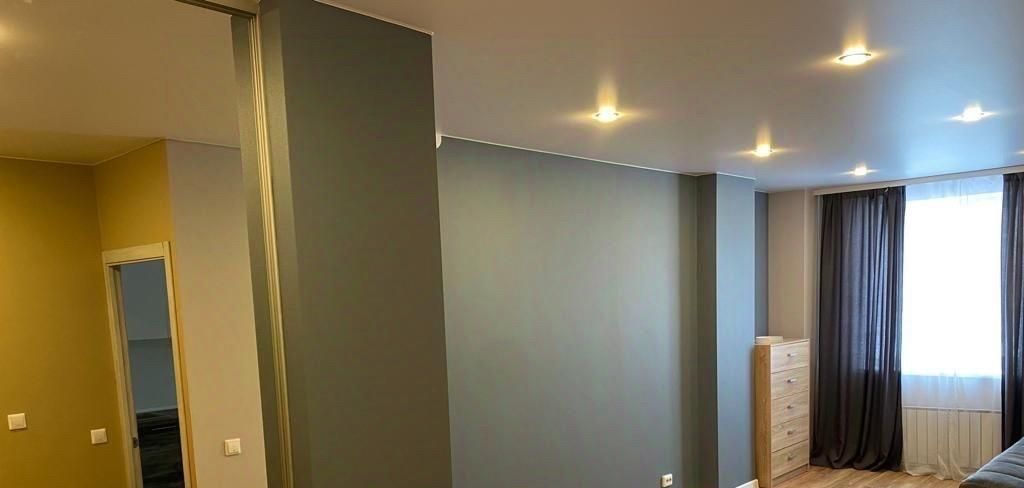 В Комнате стоит хороший большой двухспальный диван (на фото плохо видно). На кухне ЕСТЬ посудомоечная машина. Большая гардеробная за дверью-купе. Есть лоджия.