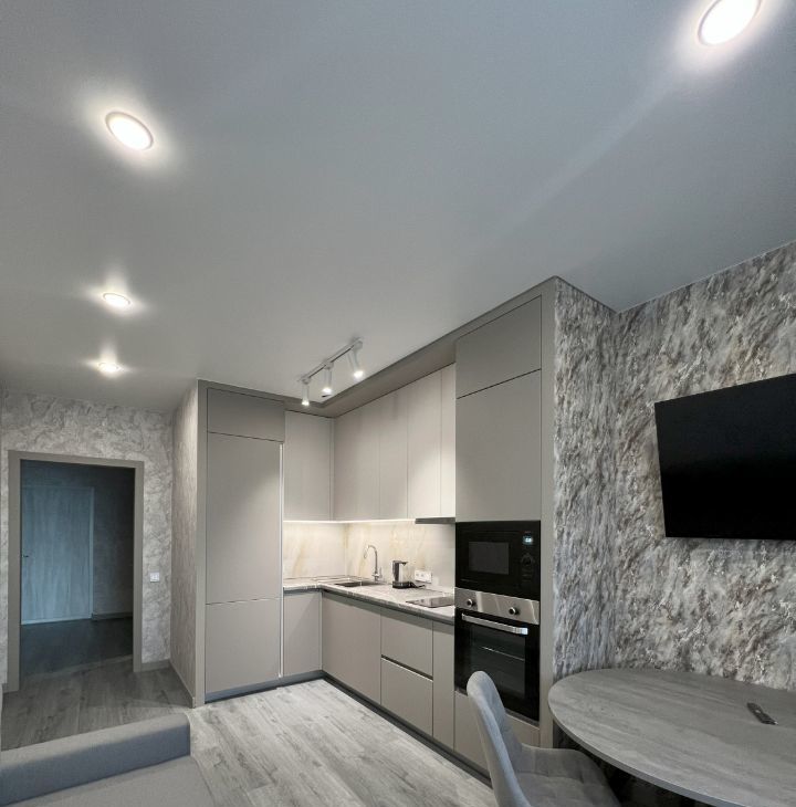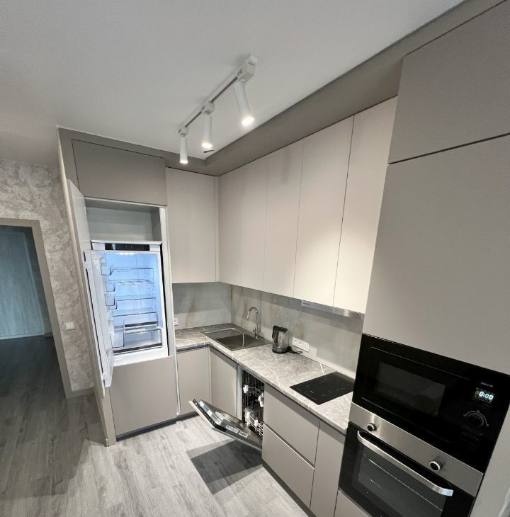 Квартира с евроремонтом, полностью готова к проживанию. В комнате и на кухне есть вся необходимая мебель, техника и посуда (электрический чайник, утюг, гладильная доска). В квартире установлена современная техника: холодильник, телевизор, посудомоечная и стиральная машины, кондиционер. Санузел совмещённый, оборудован ванной с тропическим душем, зеркало с подсветкой, теплый пол с регулировкой, а также установлена система фильтров. Есть большая уютная лоджия для вечерних посиделок или утренних кофе-пауз. Ремонт делали для себя, все шкафы с доводчиками, вся техника на кухне встроенная (холодильник, духовой шкаф, микроволновая печь, вытяжка, индукционная варочная панель, посудомоечная машина).