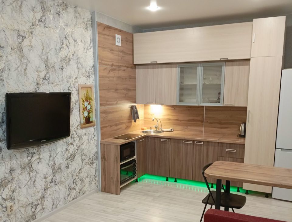 Сдается на длительный срок уютная однокомнатная квартира с современной планировкой: просторная кухня-гостиная и отдельная спальня.