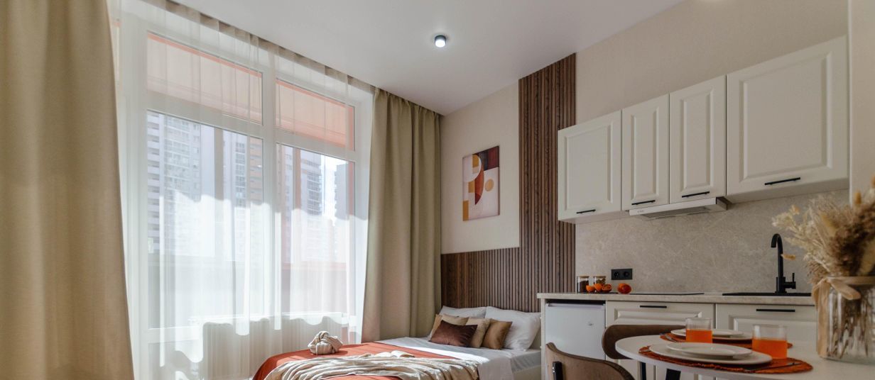 Студия идеально подойдет для 1 или 2 человек (без детей и живитных).