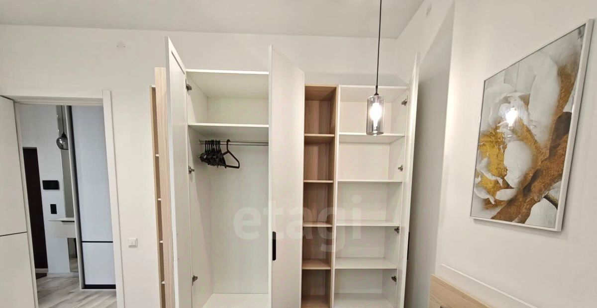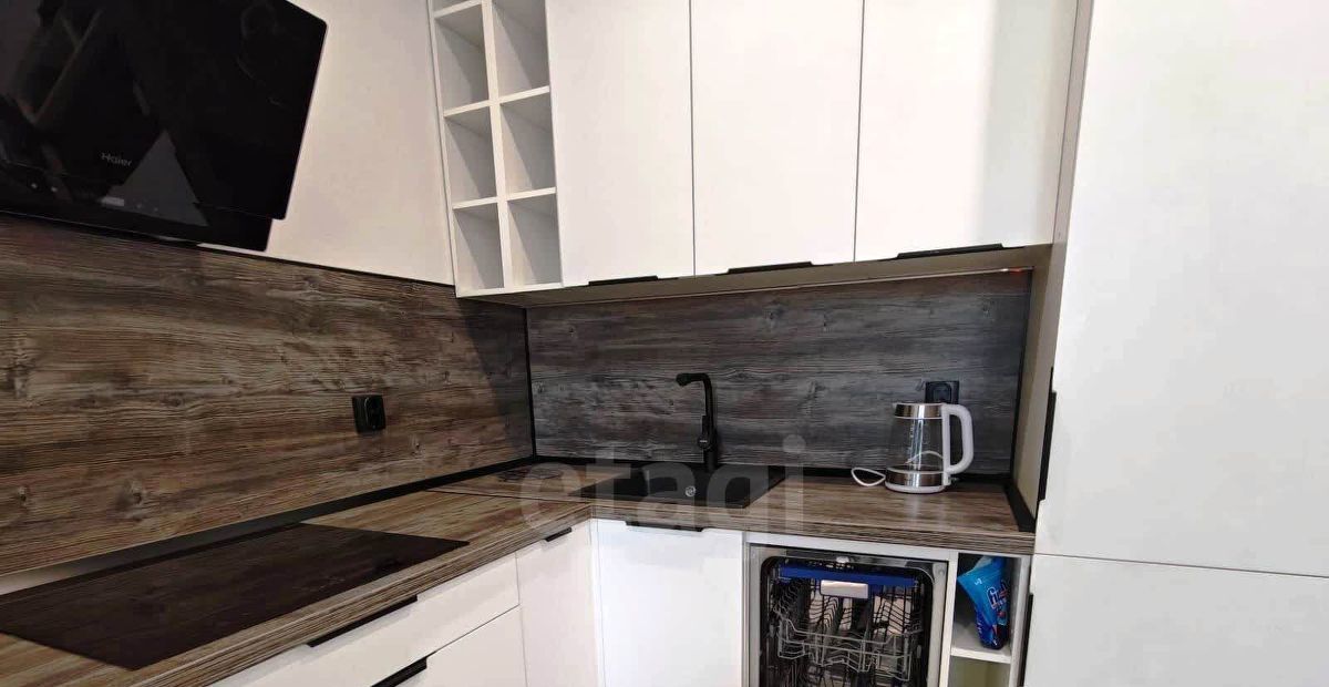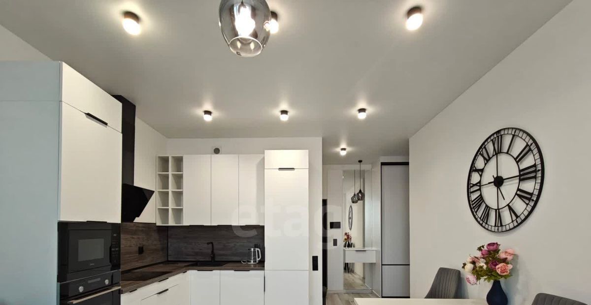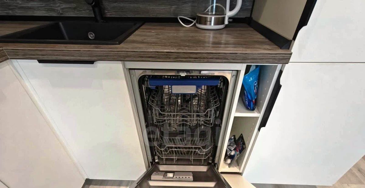 Ключевые преимущества — удобная планировка с изолированными комнатами и просторной гардеробной, а также качественная инженерия: в санузле установлена душевая кабина и система теплого пола, на кухне — гарнитур со встроенной техникой, включая посудомоечную и микроволновую печь.
