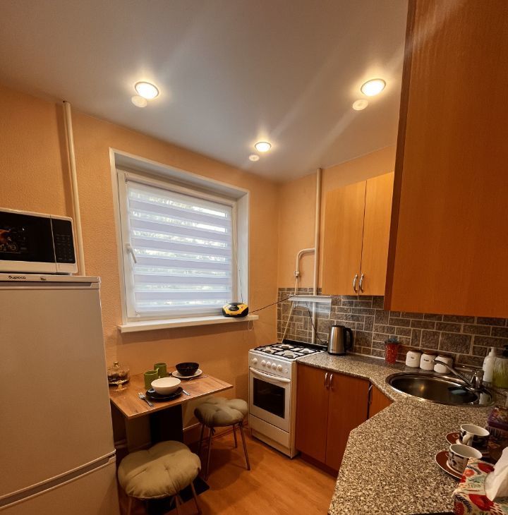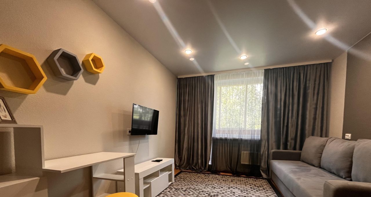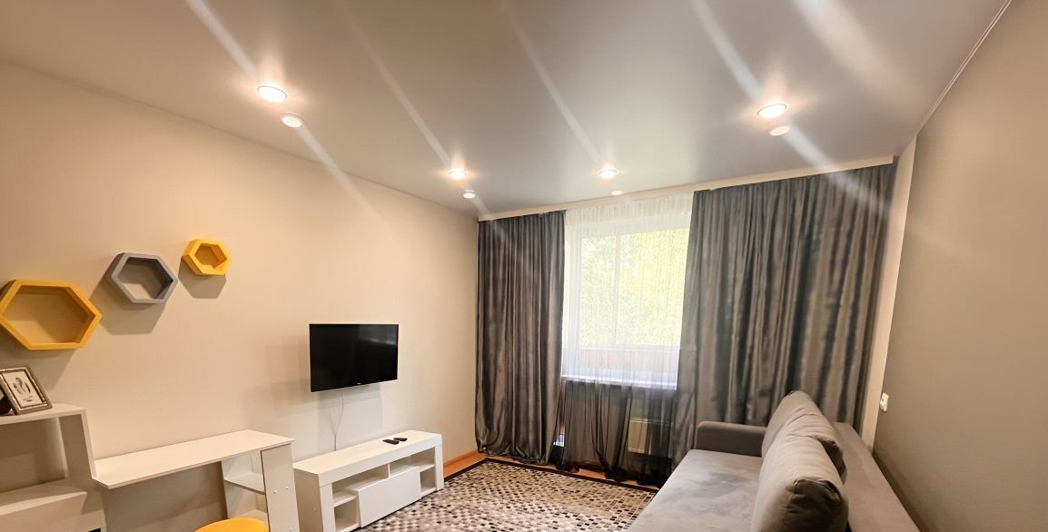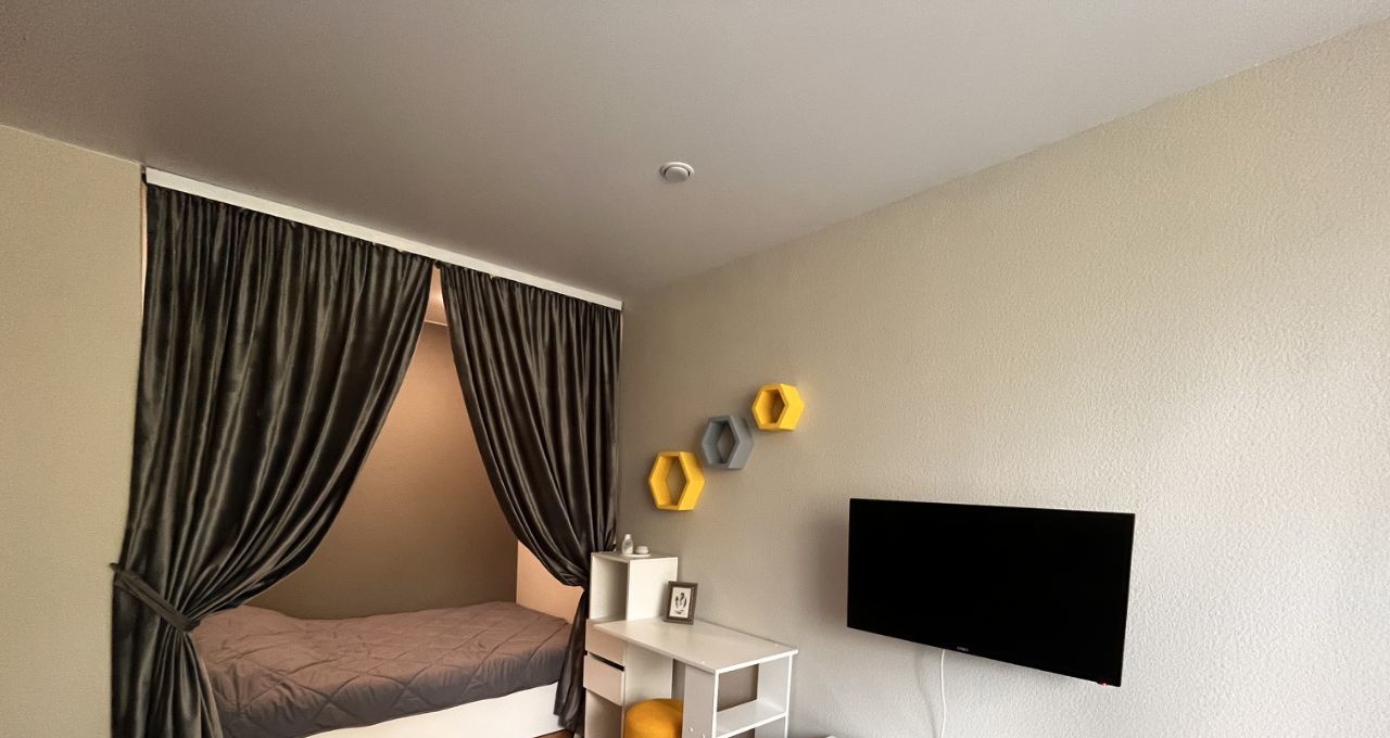 В квартире сделан косметический ремонт, есть необходимая мебель как в комнате, так и на кухне. Для вашего удобства в наличии вся необходимая техника: холодильник, телевизор и стиральная машина. Санузел совмещённый, оборудован ванной. Есть балкон, где можно отдохнуть на свежем воздухе.