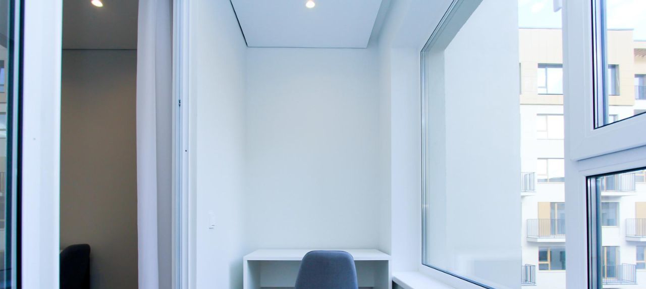 Предлагается в долгосрочную аренду светлая 1-комнатная квартира 193 с организованной рабочей зоной на утепленной лоджии в арендном Доме "Южные Кварталы" от ДОМ.РФ.
