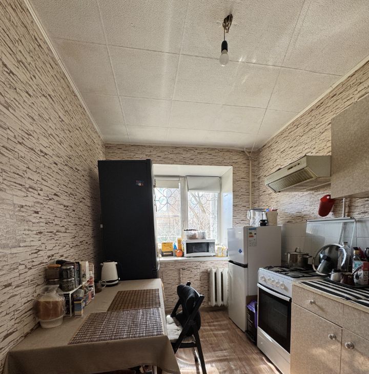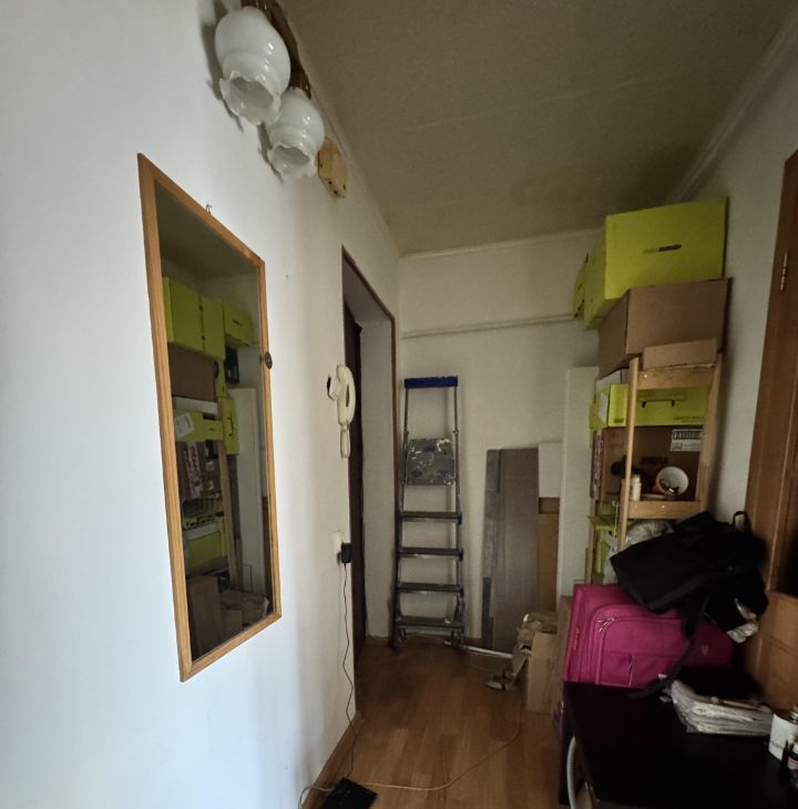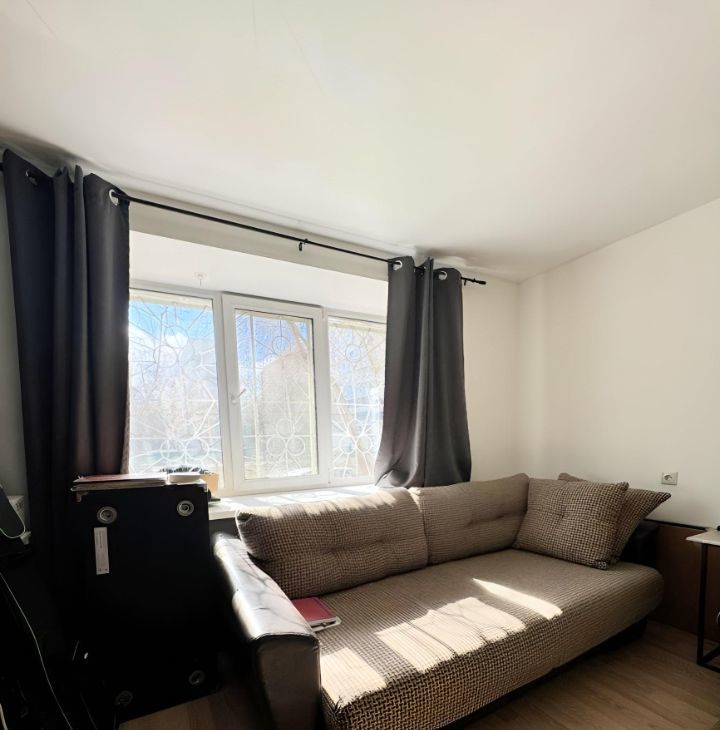 1-й этаж. Окна во двор. Сделан косметический ремонт: обои под покраску в жилой комнате и коридоре, уже покрашены; в комнате положен качественный ламинат; окна пластиковые с маскитными сетками; куплен ламинат на кухню и коридор (сейчас линолеум) оставим в подарок. В квартире оставим шкаф-купе с зеркалом и диван (диван раскладывается)