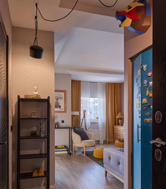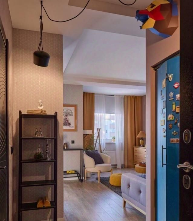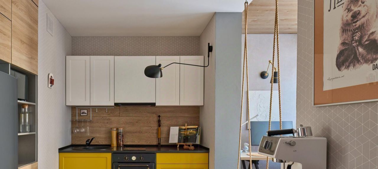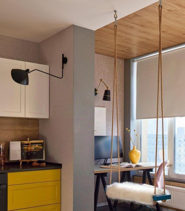 На площади 36 квадратных метров обустроены абсолютно разные зоны, связанные между собой цветом, светом, декором. В квартире спроектирована спальня-гостиная с удобным раскладным диваном вместо кровати, организована отдельная кухня, просторная гардеробная и кабинет в лоджии.