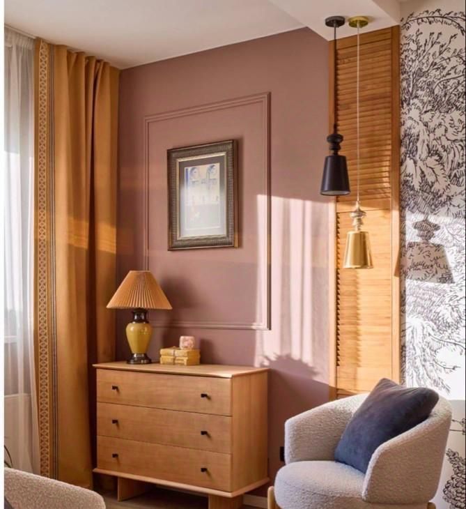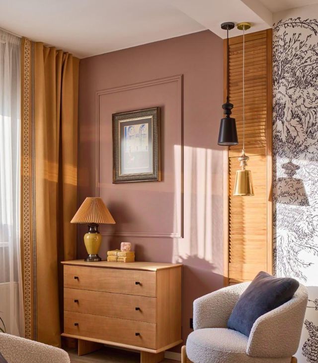 На стенах краска Farrow&Ball, меняющая оттенок в зависимости от погоды.