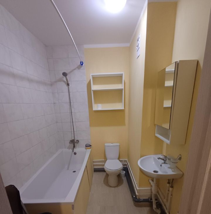 В квартире стильный и продуманный интерьер: современная мебель как в комнате, так и на кухне. Вся необходимая техника также в наличии — холодильник и стиральная машина. Планировка предусматривает совмещённый санузел с ванной, что добавляет комфорта. Кроме того, вам будет приятно проводить время на лоджии, наслаждаясь спокойствием и уютом.