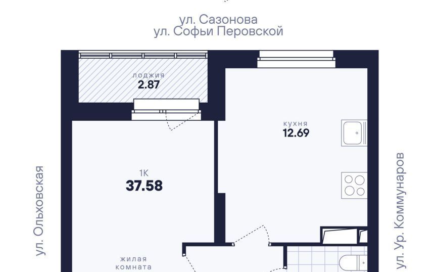 1-к кв. Свердловская область, Екатеринбург ул. Софьи Перовской, 106А (38.0 м²)