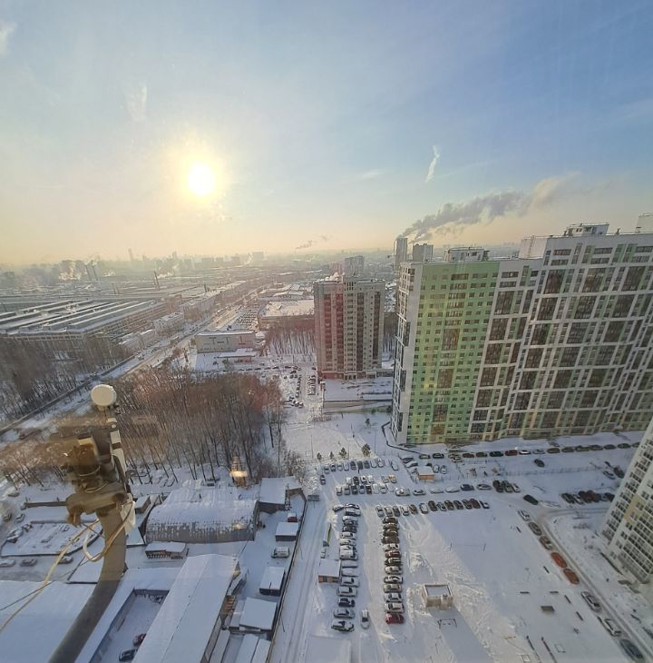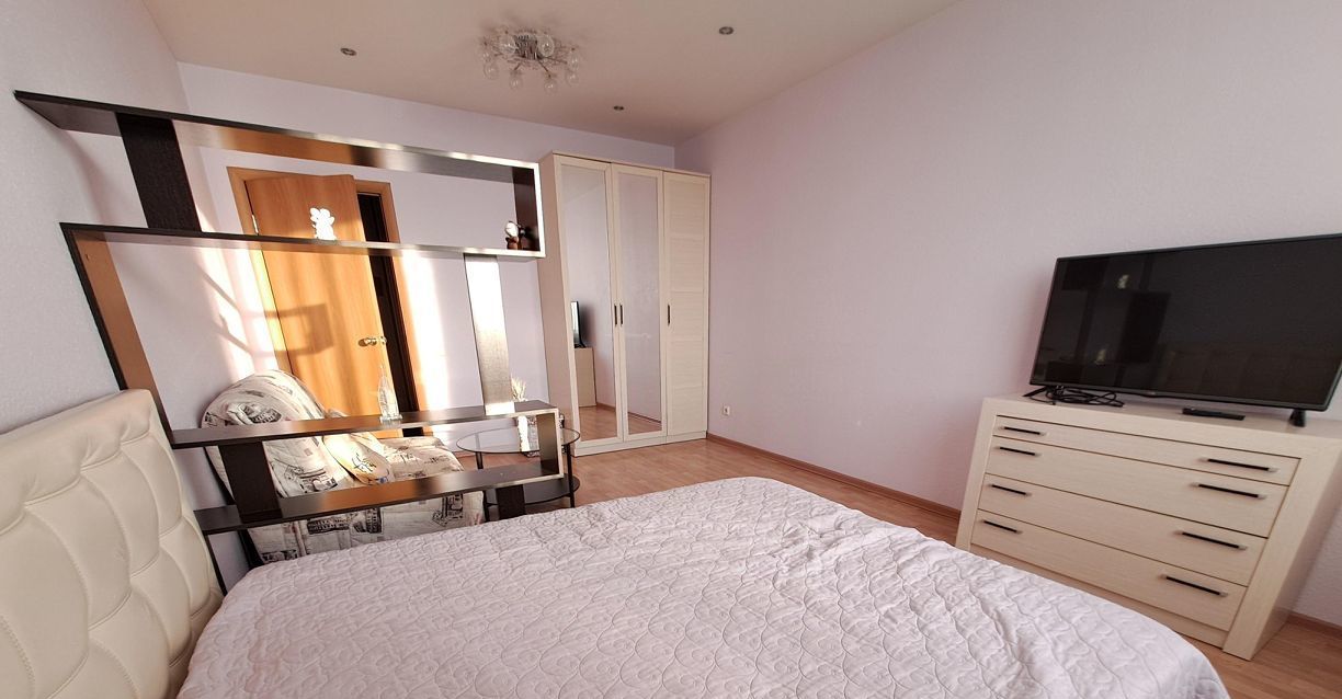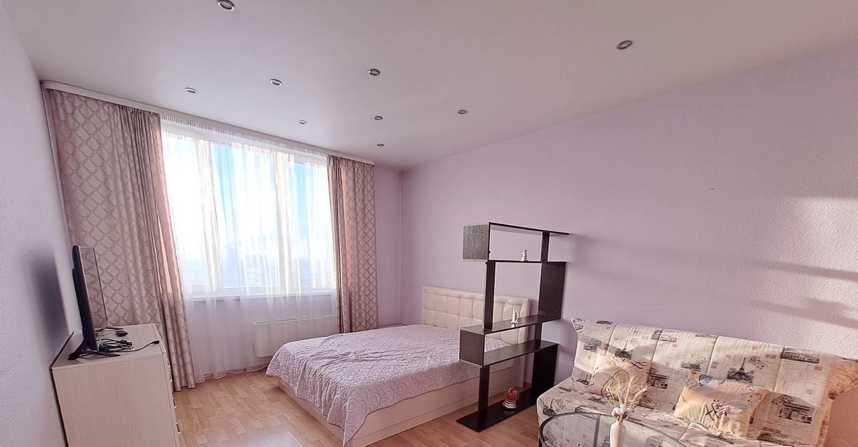 Светлая однокомнатная квартира с видом на центр города. В квартире всё необходимое для комфортного проживания. Просторная комната 19 кв.м. визуально разделена на гостевую зону и спальню.