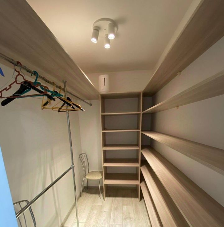 В прихожей большая гардеробная с выкатной зеркальной дверью, в которой поместятся все ваши вещи, а также зеркало и комод /обувница.