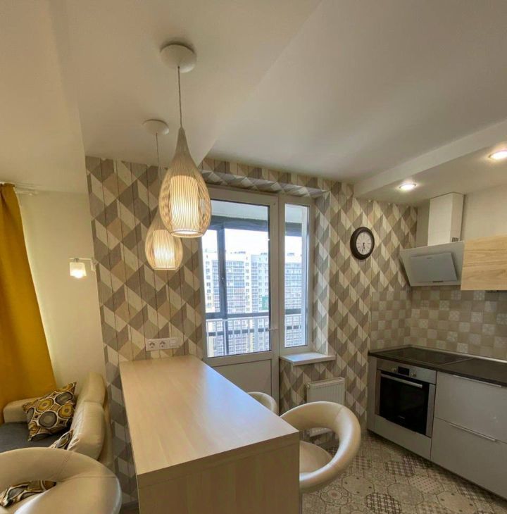Планировка и отделка квартиры от дизайнера, ремонт делался для себя, продуманы зоны кухни и отдыха, теплые полы плитка в коридоре, зоне кухни,ванной, есть рабочее место (стол,стул) с удобным расположением розеток интернет-канала, спальное место на 2-х спальной кровати, диван раскладывается.