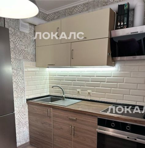 В квартире остается кухонный гарнитур с варочной поверхностью, вытяжкой и духовым шкафом, мебель в ванной комнате.