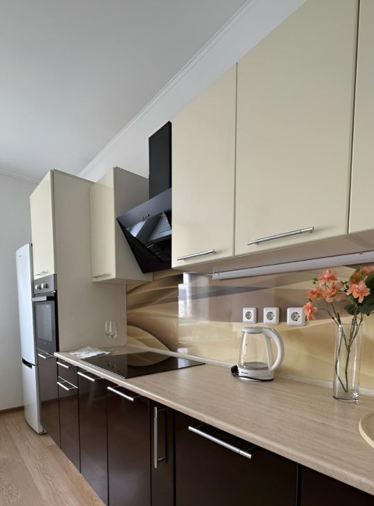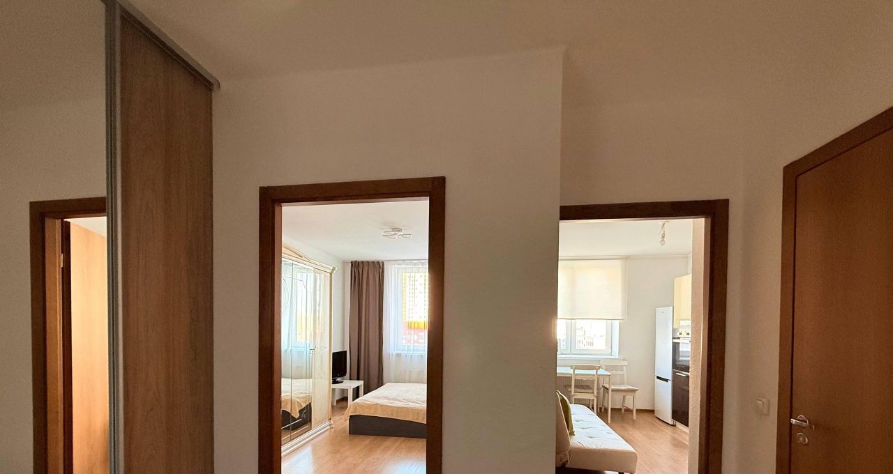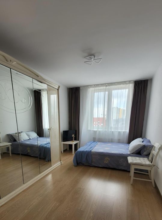 Сдам милую, уютную, однокомнатную квартиру в экологически чистом районе. Новый дом, ухоженный двор, в доме продовольственные и хозяйственные магазины. Остановка общественного транспорта в паре шагов от дома. До центра 25 минут на транспорте. В квартире есть все необходимое для максимально комфортного проживания. Полностью укомплектована кухня, гарнитур, посудомоечная машина, духовой шкаф, варочная панель, вместительный холодильник, большой удобный обеденный стол, 4 стула, посуда и кухонные принадлежности. Спальные места, кровать в комнате и двуспальный диван на кухне . На кухне и в комнате имеются межкомнатные двери .