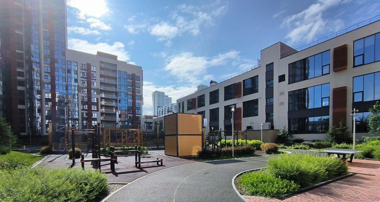- закрытая территория двора с зелеными лаунж-зонами и воркаутом