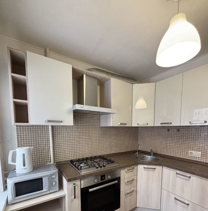 В квартире выполнен ремонт, есть вся мебель для комфортного проживания: кровать с ортопедическим матрасом, диван, большой шкаф и комод. Установлен турник. Также есть вместительная гардеробная и балкон с удобными зонами хранения. Качественная и функциональная кухня фирмы Lorena. Из бытовой техники: холодильник, микроволновая печь, духовой шкаф, варочная поверхность, электрический чайник. Установлен фильтр для воды. В сан узле есть стиральная машина.