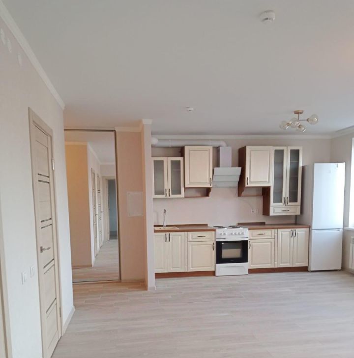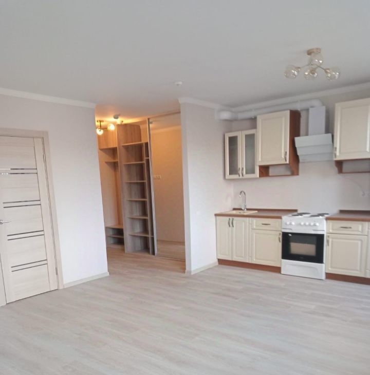 Есть только Кухонный гарнитур, Холодильник, Плита, Вытяжка, Кровать. Большой шкаф купе в прихожей.