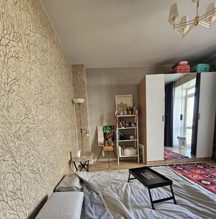 Имеется вся мебель для комфортного проживания. На данный момент спальное место - лежит матрас (очень нравилось именно так), но есть возможность при необходимости поставить кровать, либо диван! (обсуждаем, как удобнее арендатору.