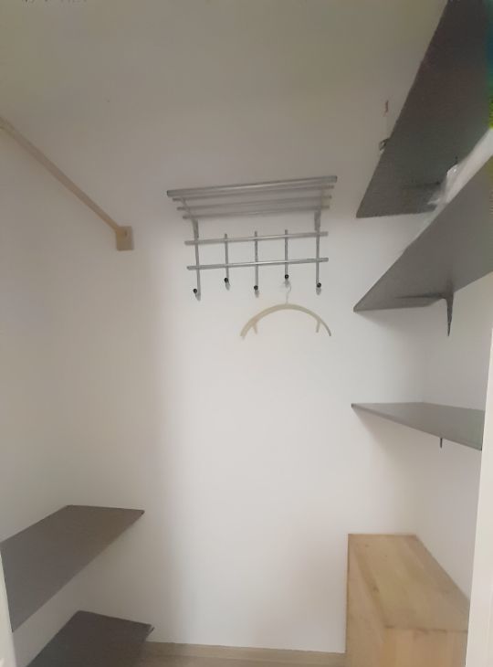 Диван, 1-местная кровать, шкаф 3-х створчатый, стеллаж для книг, холодильник, кухонный гарнитур, 2 стола, табуретки, стиральная машина, кухонный гарнитур, гардеробная, ламинат.