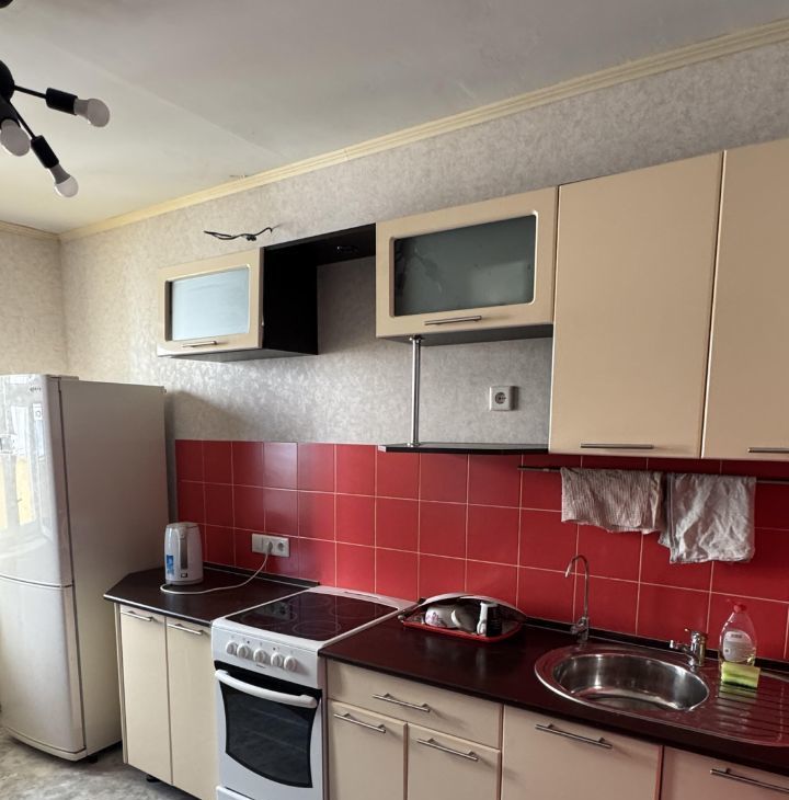 Техника вся необходимая есть (холодильник, стиральная машина, небольшой плоский телевизор, чайник)