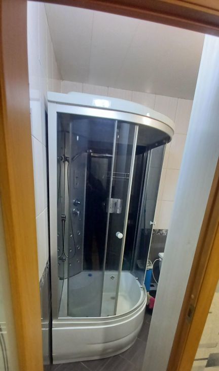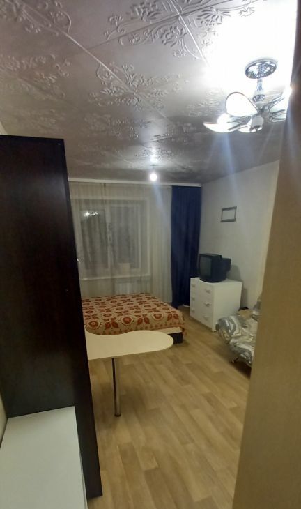 В комнате установлены спальные места и телевизор. Из мебели также имеется вместительный шкаф. Совмещённый санузел оборудован всем необходимым.