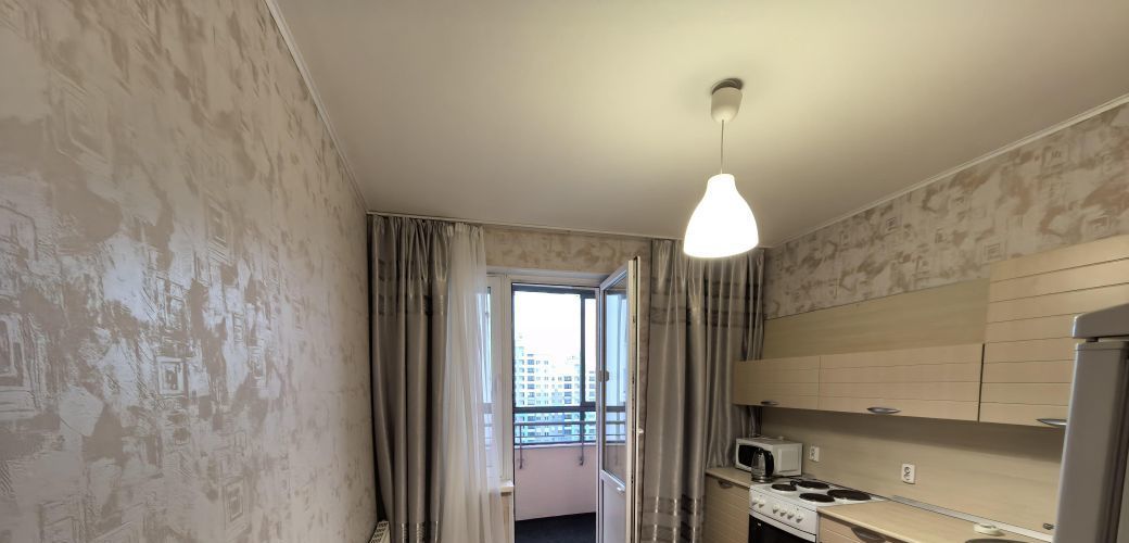 Сдается уютная однокомнатная квартира площадью 40 кв. м на 13 этаже современного 22-этажного монолитно-кирпичного дома, построенного в 2015 году. Просторная жилая площадь составляет 18 кв. м, а кухня - 12 кв. м. Высота потолков - 2.7 метра, что придает помещению дополнительный объем и свет. Окна квартиры выходят во двор, поэтому здесь всегда тихо и спокойно.