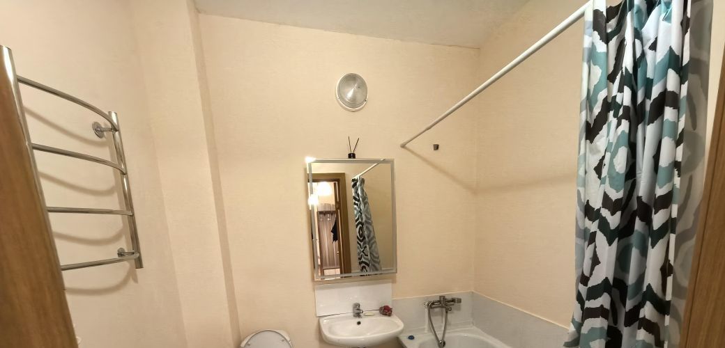 Квартира с косметическим ремонтом, поэтому вы сможете сразу заселиться и наслаждаться комфортом. На кухне есть вся необходимая мебель, а также холодильник, телевизор и стиральная машина. Санузел совмещенный, с ванной, что добавляет удобства для повседневной жизни.