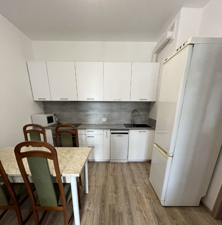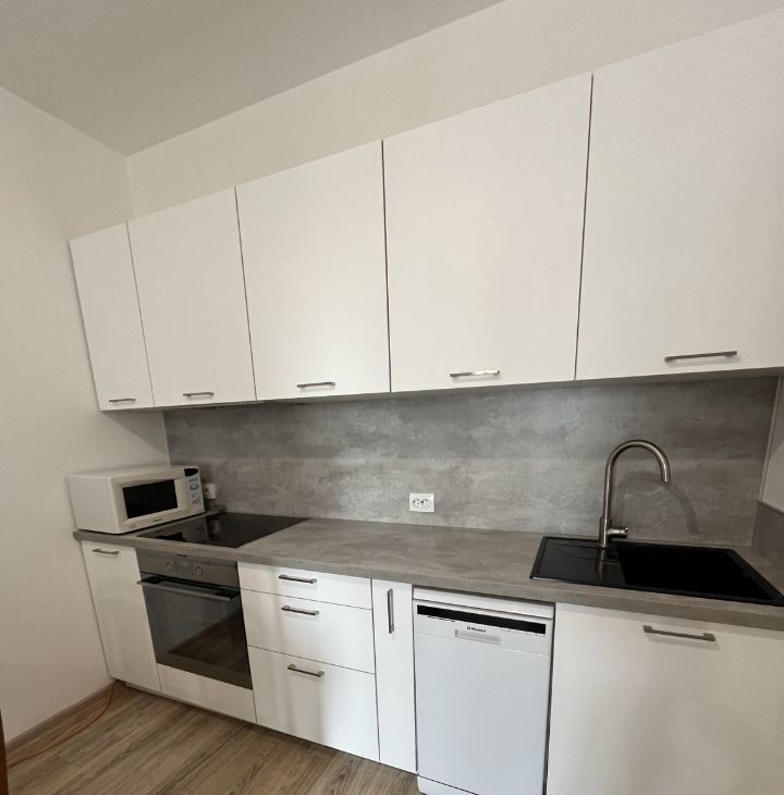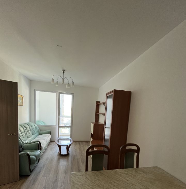 Квартира полностью меблированная, сдается двум(паре) или одному человеку на длительный срок. Кухонный гарнитур включает в себя плиту Сименс, духовку Hansa, посудомойку Hansa, микроволновку и холодильник. Жилая зона имеет двуспальную кровать с матрасом (Икея), комод, стол, шкаф. Санузел совмещенный, новая стиральная машина.