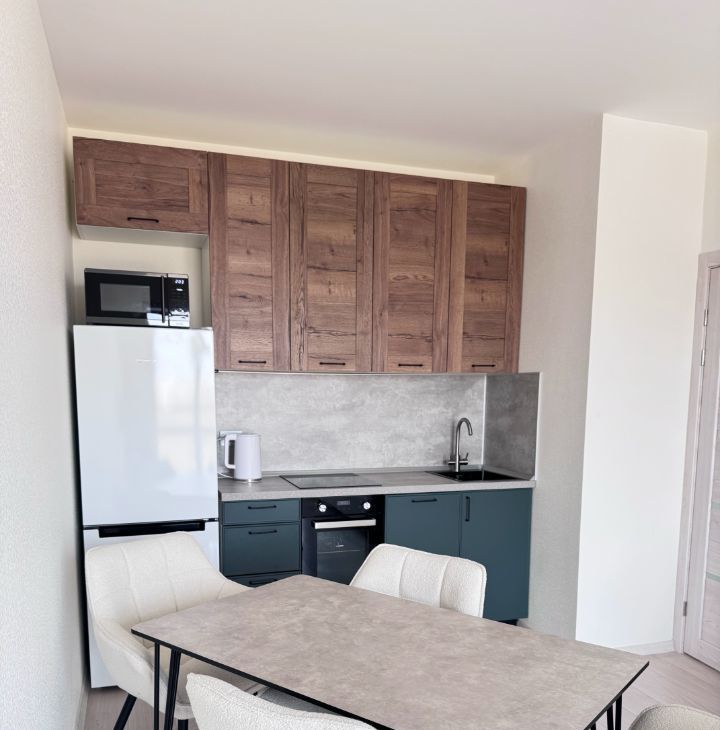 Уютная светлая квартира (отдельная спальня и кухня-гостиная), одно из главных преимуществ — никто не жил в помещении после проведённого ремонта. Функциональный двор без машин, наземная парковка, магазины, аптека и пункты выдачи.