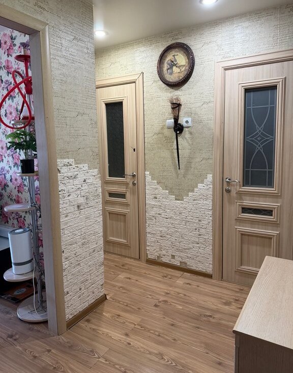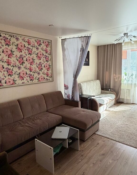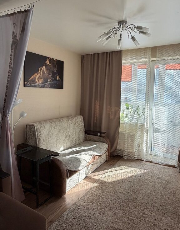 В квартире сделан дизайнерский ремонт, что создаёт атмосферу уюта и стиля. Комната меблирована, есть два дивана и телевизор, на кухне есть вся необходимая техника: холодильник, телевизор, стиральная машина. Санузел отдельный, с ванной. В квартире есть просторная гардеробная! Лоджия добавляет дополнительное пространство для отдыха или хранения.