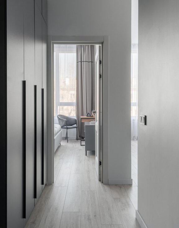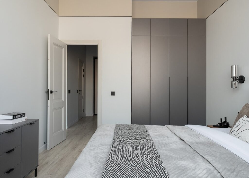 · Спальня: Предусмотрена продуманная система хранения и выделенная зона с туалетным столиком для макияжа