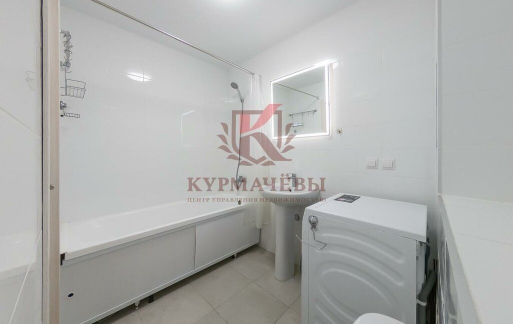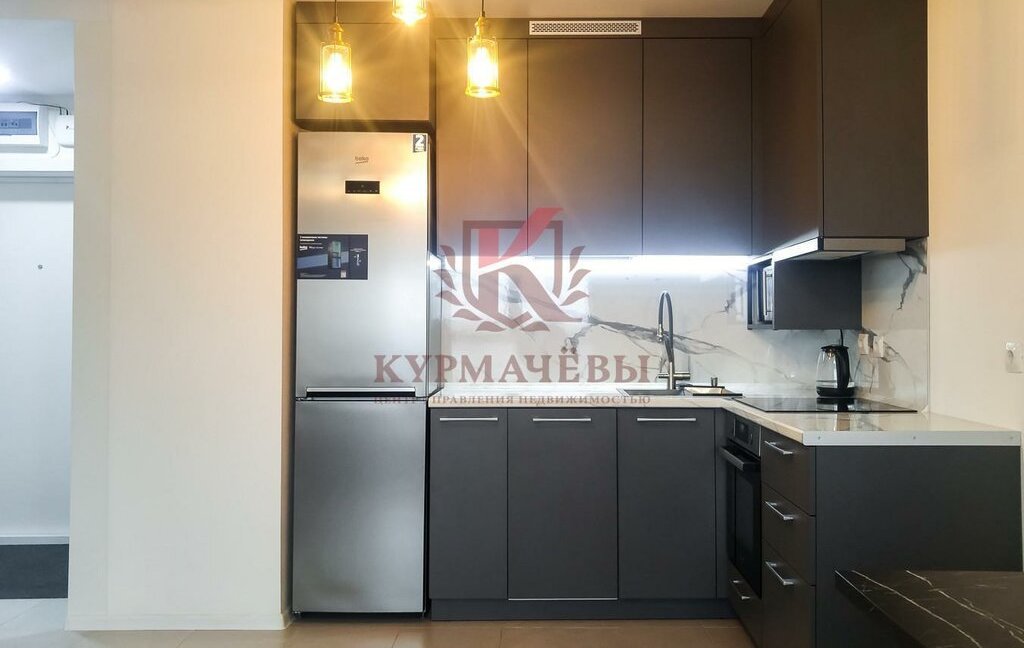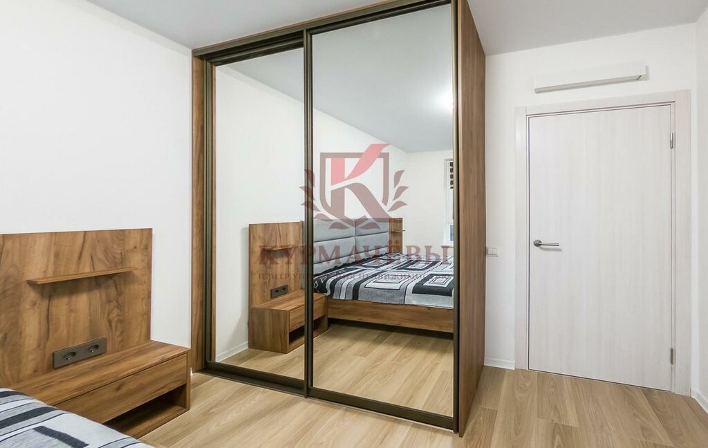 – холодильник, электрическая варочная поверхность, духовой шкаф, микроволновая печь, посудомоечная машина, кондиционер, стиральная машинка, зеркало с подсветкой и подогревом.