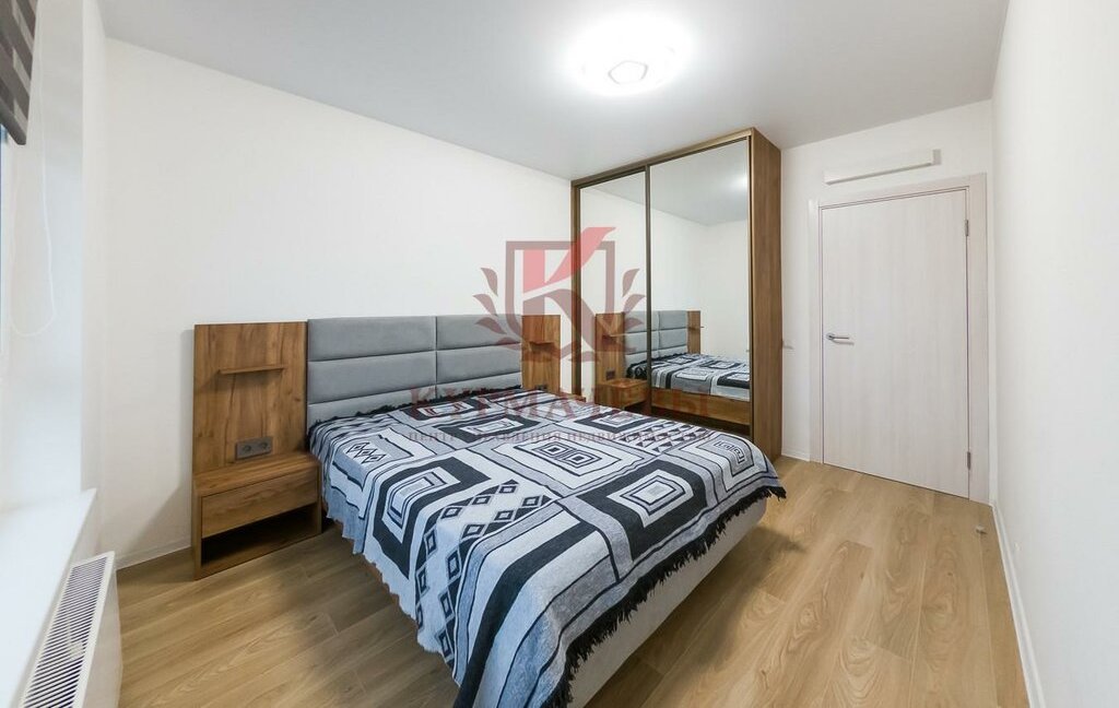 – кухонный гарнитур, обеденный стол со стульями, письменный стол, комод, два вместительных гардеробных шкафа, двуспальная кровать с матрасом и две прикроватные тумбочки.