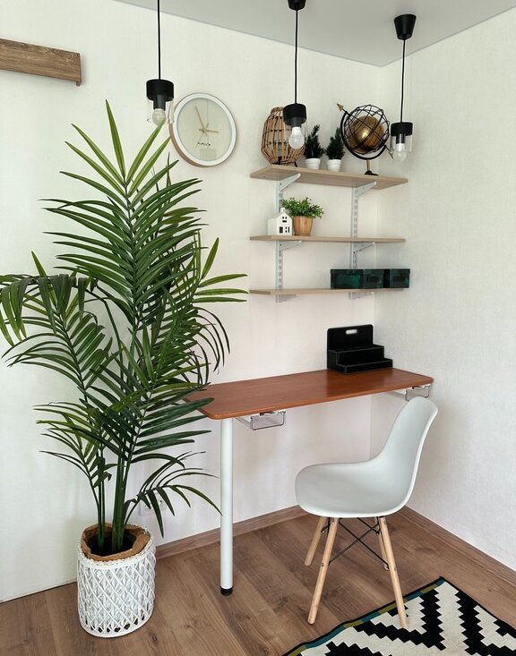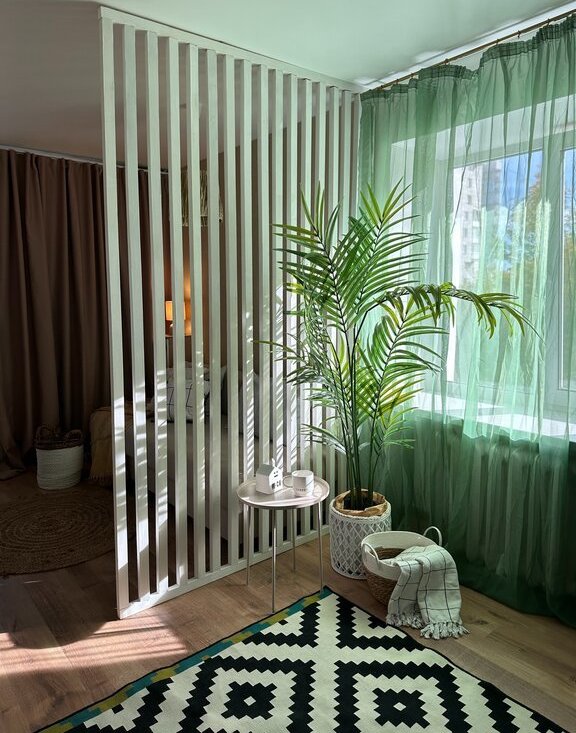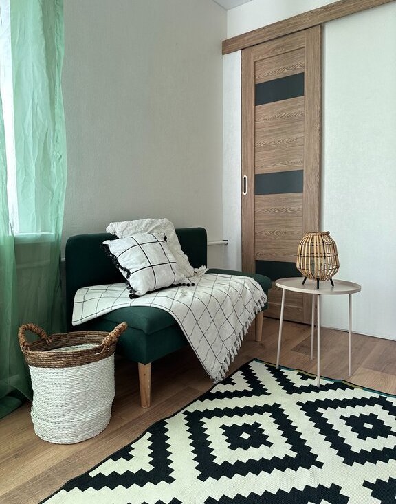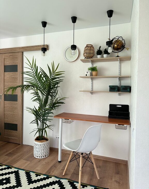 Светлая комната с двумя окнами (восток и юг), зонирована на спальную и рабочую зоны. Есть отдельная гардеробная для хранения вещей.