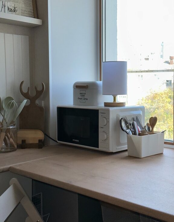 Есть все необходимые вещи для проживания (посуда, микроволновка, стиральная машина, телевизор и т.д.). Небольшой застекленный балкон для хранения вещей.