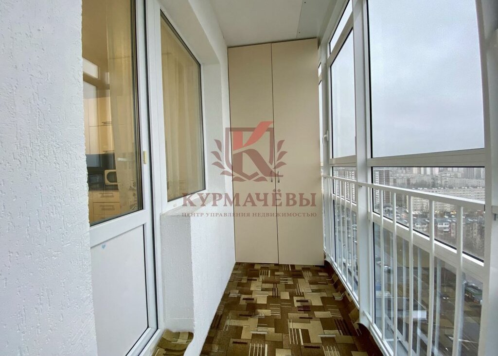 Просторная квартира площадью 38.7 кв.м., есть застекленный панорамный балкон со шкафом.