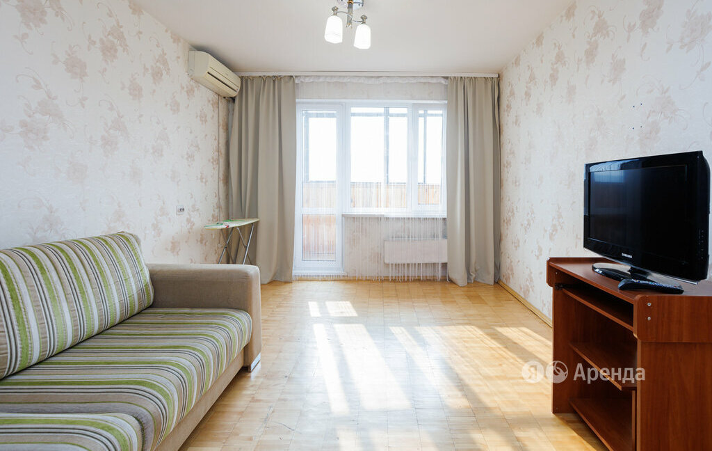 Сдаётся 1-комнатная квартира площадью 38 кв.м. с косметическим ремонтом на 8 этаже в 10-этажном доме на срок от 11 месяцев. Из техники есть: