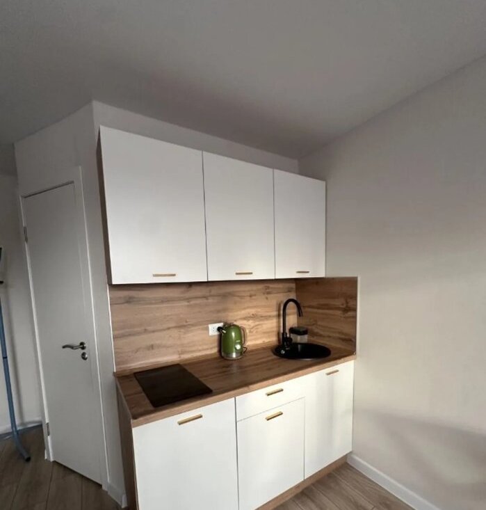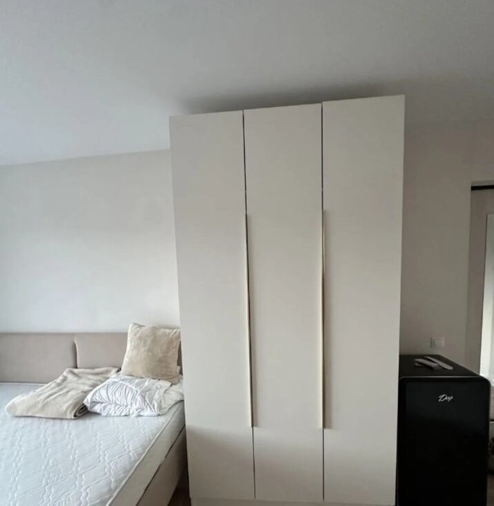 - Вся мебель подобрана с учетом комфорта и функциональности: удобная кровать ширина 120 см (можно спать вдвоем) с ортопедическим матрасом, предусмотрен подъемный механизм для дополнительного хранения, шкаф распашной, компактная кухня размером 1,5 метра с варочной панелью на две конфорки, небольшим холодильником, чайником, микроволновой, мультиварка ( могу увезти), столом, стульями и стеллажом на входе